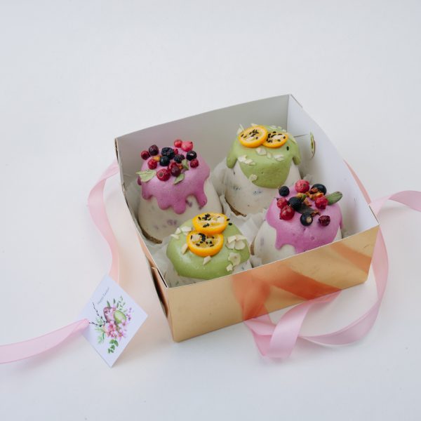 2 вкуса:(2 пасхи с малиной и фисташкой и 2 пасхи с сухофруктами)